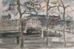 René LEVREL (1900-1981) Pont de Paris Aquarelle signée en bas à gauche 17.5 x 27.5 cm à vue