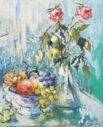 Marguerite DELPY (1910-1991) Nature morte au vase de roses Huile sur toile signée en bas à droite 61 x 50 cm
