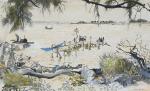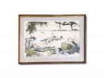 Dany LARTIGUE (1921-2017) Viet Nam, paysage au ponton Gouache et aquarelle signée en bas à droite 46,5 x 72 cm à vue