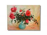 Jean BACONNAIS (1931-2020) Roses rouges dans un vase vert, 1992. Huile sur toile signée et datée en bas à gauche 50 x 65 cm