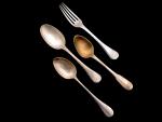 Trois CUILLERES A DESSERT et une FOURCHETTE A DESSERT en argent, différents modèles 1809-1818 et Minerve Poids: 158 gr
