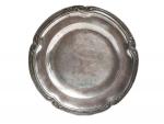 PLAT rond en argent, la bordure moulurée de fleurs et feuillage Art Nouveau Minerve. Orfèvre: Emile PUIFORCAT D.: 28 cm Poids: 706 gr