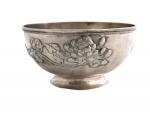 BOL rond en argent à décor de branchages fleuris Travail indochinois Orfèvre: LUENWO H.: 7 cm D.: 13.5 cm Poids: 260 gr