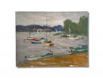 Henri BIARD (1918-2001) Voiliers dans la baie Huile sur toile 46 x 61 cm