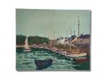Henri BIARD (1918-2001) Voiliers au port Huile sur toile 54 x 65 cm