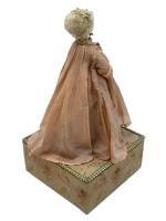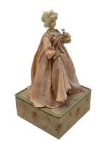 AUTOMATE représentant une femme tenant un bouquet de fleurs, mouvements possibles: tête et un bras avec musique H.: 37 cm