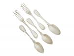 Trois CUILLERES et deux FOURCHETTES en argent, modèle filets, chiffrées XVIIIème à Minerve Poids: 360 gr