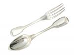 Suite de six COUVERTS en argent, modèle filets, chiffrés Paris, 1819-1838. Orfèvre: TV DUTREVIS Poids: 1 kg 110