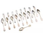 Huit FOURCHETTES et dix CUILLERES en argent, modèle filets, chiffrées Vieillard et Minerve Poids: 1 kg 1420