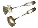 Deux PIECES DE SERVICE A PETITS FOURS en argent et vermeil à décor ajouré Minerve. Orfèvre: Alphonse DEBAIN (1883-1911) L.: 13 et 14 cm Poids: 58 gr
