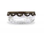 JATTE en cristal gravé, la monture probablement en argent Apparemment sans poinçon H.: 6.5 cm D.: 15 cm Poids brut: 362 gr