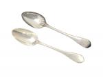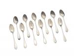 Suite de douze CUILLERES A THE en argent, modèle filets années 40, chiffrées Minerve. Orfèvre: Jacques et Pierre CARDEILHAC (1920-1945) Poids: 386 gr