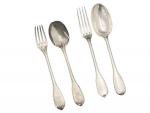 Suite de dix-huit COUVERTS A DESSERT en argent, modèle filets...