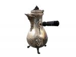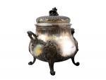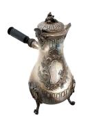 VERSEUSE et SUCRIER en argent à riche décor rocaille avec cartouche, le manche en bois noirci Minerve. Orfèvre: Léon LAPAR (1878-1897) H. max.: 25.5 cm Poids brut: 1 kg 534