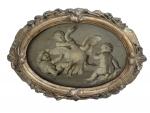 ECOLE FRANCAISE dans le goût du XVIIIème Amour jouant avec un cygne Huile sur panneau 26.5 x 40.5 cm
