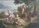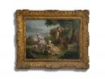 ECOLE FRANCAISE dans le goût du XVIIIème La cueillette de cerises Huile sur toile 42 x 55 cm (petites restaurations)