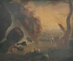 ECOLE FRANCAISE du XIXème Paysage maritime Huile sur toile 54.5 x 65 cm (accidents et manques)