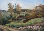 Eugène Charles PICOU (1831-1914) Nantes, les Dervallières, 1896. Huile sur panneau signée en bas à gauche, datée et située au dos 24 x 33 cm