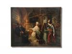ECOLE FRANCAISE du XIXème Le peintre et son modèle Huile sur toile 51.5 x 65 cm (restauration)