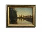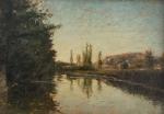 François Joseph GUIGUET (1860-1937) Paysage à la rivière Huile sur panneau 17 x 24.5 cm à vue Provenance: - descendance de l'artiste