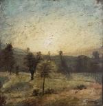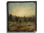 François Joseph GUIGUET (1860-1937) Paysage au coucher de soleil Huile sur toile 19.5 x 18.5 cm Provenance: - descendance de l'artiste