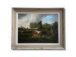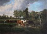 Karl CARTIER (1855-1925) Vaches s'abreuvant Huile sur toile signée en bas à gauche 48.5 x 64.5 cm (déchirures et restaurations)