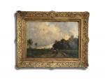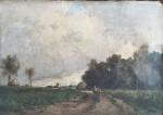 Paul LECOMTE (1842-1920) La promenade Huile sur toile signée en bas à gauche 32.5 x 46 cm (déchirures, usures)