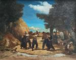 ECOLE FRANCAISE fin XIXème - début XXème Le battage du blé Huile sur toile 72.5 x 92 cm