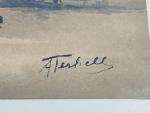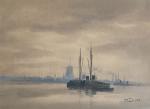 Adriaan Christian W. TERHELL [hollandais] (1863-1949) Paysage maritime aux remorqueurs devant un moulin Aquarelle signée en bas à droite 28 x 39 cm