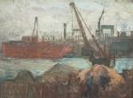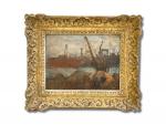Fernand PINEAU CHAILLOU (1875-1950) Nantes, le port animé, 1913. Huile sur carton toilé, signée et datée en bas à gauche 33 x 40.5 cm