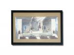 Louis GARIN (1888-1959) Intérieur d'église, 1949. Gouache signée et datée en bas à droite 12 x 22.5 cm à vue