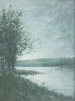 Maurice PROUST (1867-1944) Paysage à l'étang Huile signée en bas à droite 46.5 x 31 cm à vue