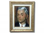 François GALL (1912-1987) Paris, portrait de Ponomarew, 1946. Huile sur carton signée, datée et située en bas à droite 33 x 24 cm