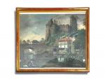 Edmond BERTREUX (1911-1991) Clisson, le château, 1954. Aquarelle et gouache signée et datée en bas à droite 50 x 64 cm