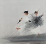 Maurice FILLONNEAU (1930-2000) L'entrainement à l'épée Aquarelle sur papier signée en bas à droite 40 x 40 cm à vue