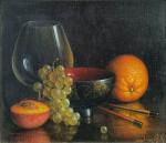 Jacques ANCELIN dit VAN RYCK (XXème) Fruits et exotisme Huile sur toile signée en bas à droite, contresignée et titrée au dos 22 x 27 cm