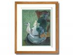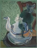 Michel DEBIEVE (né en 1931) Le chat surveillant la bouilloire Gouache signée en bas à gauche 26 x 20 cm