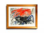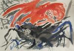 Edouard PIGNON (1905-1993) Combat de coqs en rouge et noir, 1970. Aquarelle sur papier signée et datée en bas à droite 75 x 55 cm