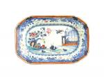 CHINE Compagnie des Indes Plat rectangulaire à pans coupés en porcelaine à décor famille rose d'un...