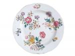 CHINE Compagnie des Indes Assiette ronde en porcelaine à décor famille rose de fleurs XVIIIème D.: 22.5 cm (légères égrenures)