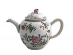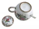 CHINE Compagnie des Indes Théière et un couvercle en porcelaine à décor famille rose XVIIIème H.: 15.5 cm (légères égrenures)