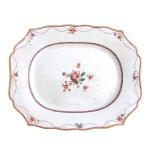 CHINE Compagnie des Indes Plat ovale en porcelaine à décor famille rose de fleurs, l'aile mouvementée XVIIIème 30.5 x 38 cm (petits sauts d'émail)
