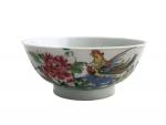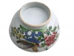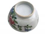 CHINE Bol rond en porcelaine à décor polychrome d'un oiseau fantastique et fleurs XIXème H.: 7.5 cm D.: 17 cm (fêle)