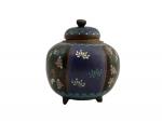 CHINE Pot et un couvercle en bronze cloisonné et émaux polychromes à décor de fleurs, reposant sur trois petits pieds H.: 10 cm