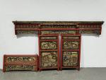 CHINE Quatre éléments en bois sculpté, mouluré, ajouré, peint et doré L. max.: 214 cm