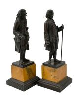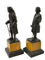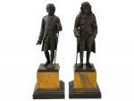 d'après Claude Antoine ROSSET (1749-1818) Voltaire et Rousseau Paire de sujets en bronze patiné, présentés sur des socles en marbre jaune de Sienne H.: 22 et 22.5 cm