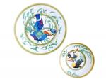 HERMES Paris Plat et coupelle ronds en porcelaine, modèle Toucans D.: 17 et 27.5 cm
