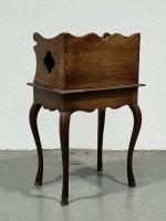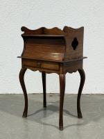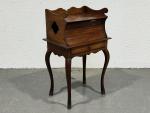 TABLE à encas rochelaise en acajou mouluré, ouvrant par un rideau à lamelles et un tiroir en ceinture, les cotés ajourés d'un motif de quartefeuille, reposant qur quatre pieds terminés par des sabots
