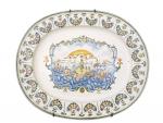 MOUSTIERS Important plat ovale en faïence à décor polychrome du triomphe d'Amphitrite 49.5 x 60 cm (très légères égrenures)