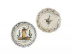 D.: 23 cm (restaurations et légères égrenures, on y joint une autre assiette en faïence XVIIIème)